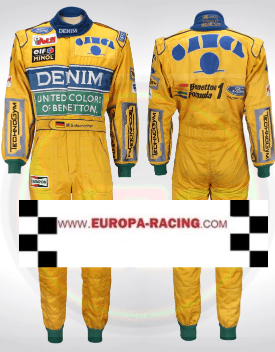 Ga karten met een uiterst uniek kartoverall namelijk die van formule 1 coureur Michael Schumacher (Benetton 1992). LET OP, het betreft een replica overall.